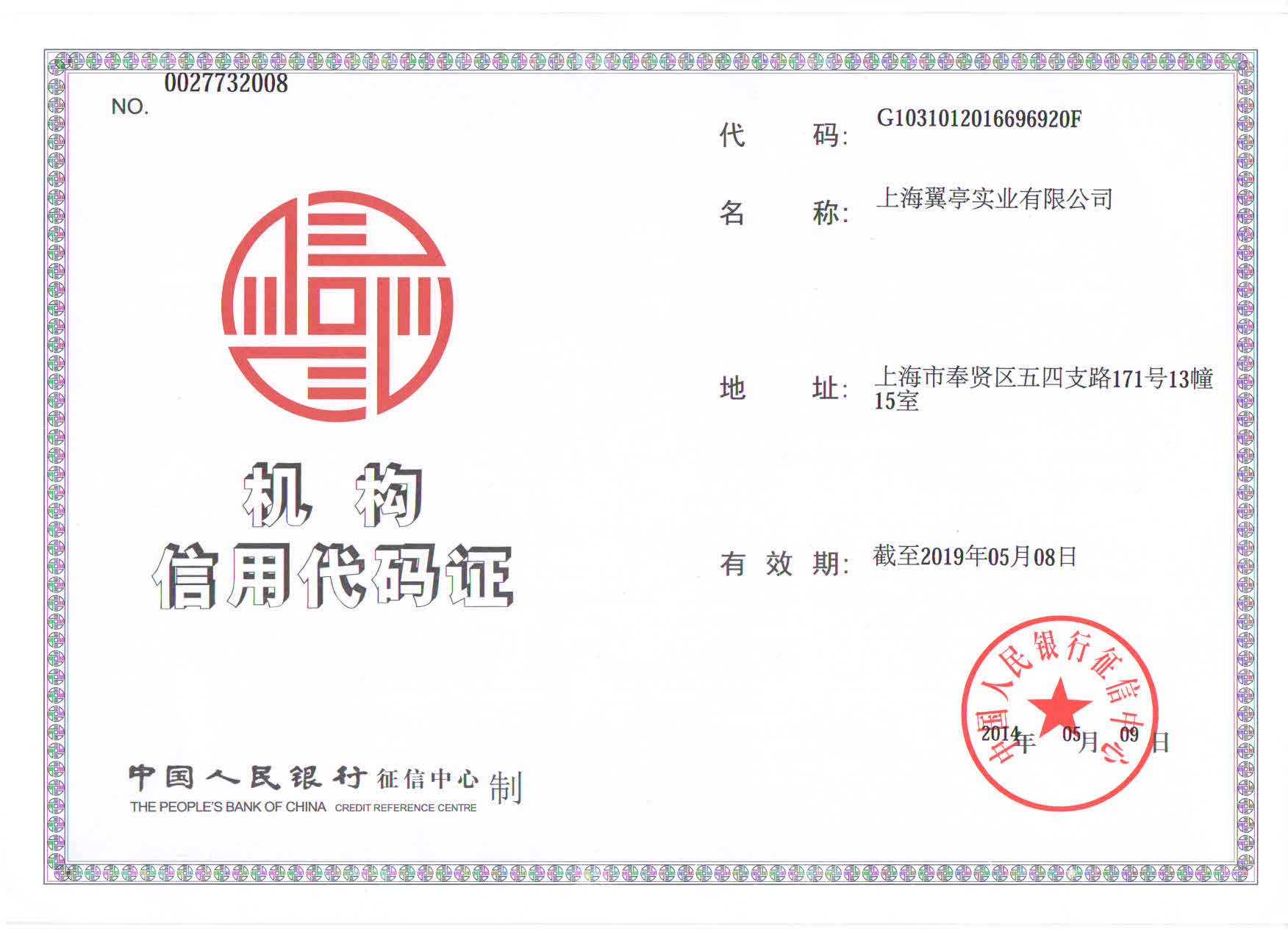 翼亭上海崗?fù)そM織機構(gòu)代碼證